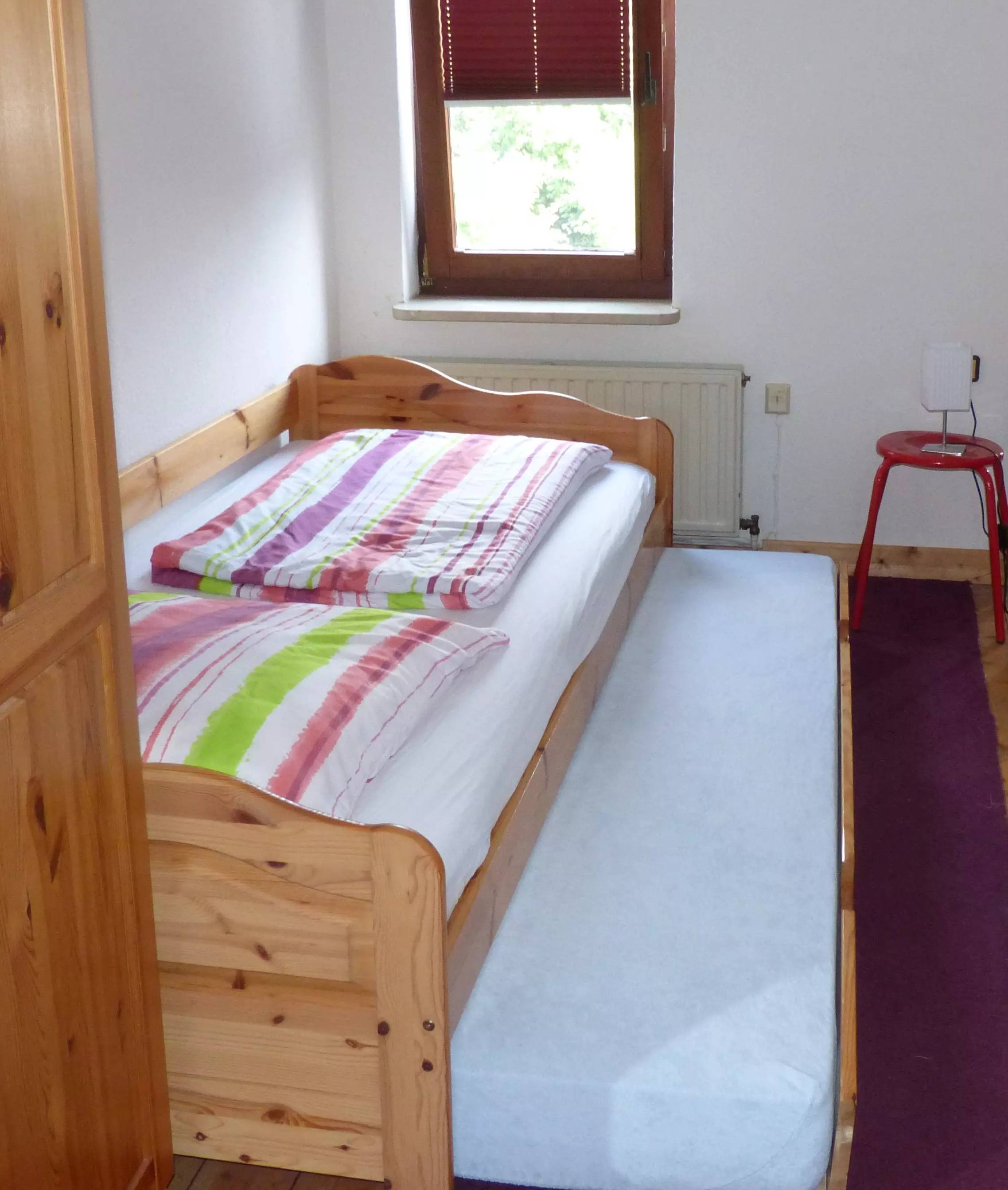 38.) Soveværelse 3 med anden seng halvt trukket ud.